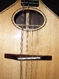 This was made for local musician Vince Jerrison, who also plays one of my steel string guitars. The mandolin is based on a Stefan Sobell instrument. You might have guessed I think Stefan’s instruments are superb and, although I don’t try to copy them I do like to follow his style of instrument. I like carving the tops as opposed to the flat soundboards of the guitars. It also gives me the opportunity to use some of the skills in carving I learned at West Dean making viols. This mandolin is fairly large bodied with a carved spruce top, Brazilian rosewood body and a scale of 340 . It has a very well balanced and sweet tone.