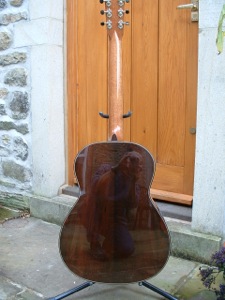 My steel string guitars have also been influenced by looking at the instruments of both classical and steel string makers from the last century. I particularly like the early small bodied guitars from C F Martin, the O, OO and OM models. My own guitars are of similar size but a different outline and with 12 or 14 frets to the body