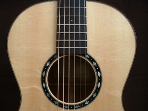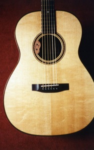 Having worked on a number of American guitars from the early 20century, I love the lightness of build and simplicity of design of some of these early guitars. I like the use of hide glues and thin finishes and the handmade quality of these instruments. So this was my inspiration for making steel strung guitars which started in 1990 with a model based on an outline similar to Martin's orchestral model.